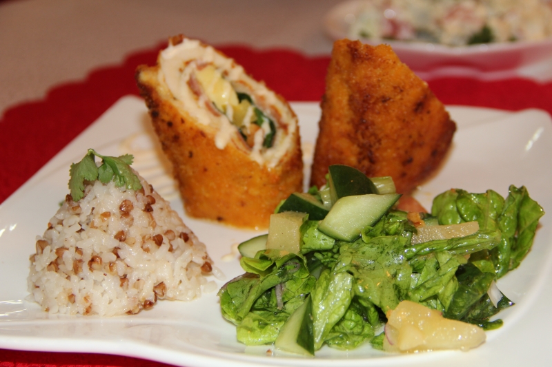 Тахиан гордон блюу /Тахианы цээж мах, сыр, төмс, бекон, сармисны гол, брокли, юуцай, яинжүү, лууван, сонгино/